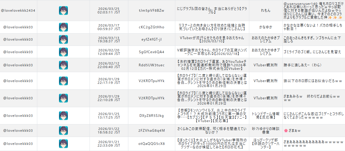 | … | 61826/03/25(水)18:33:19No.1414151688+ホロ板はにじ排斥してるのが若干怪しいくらい |