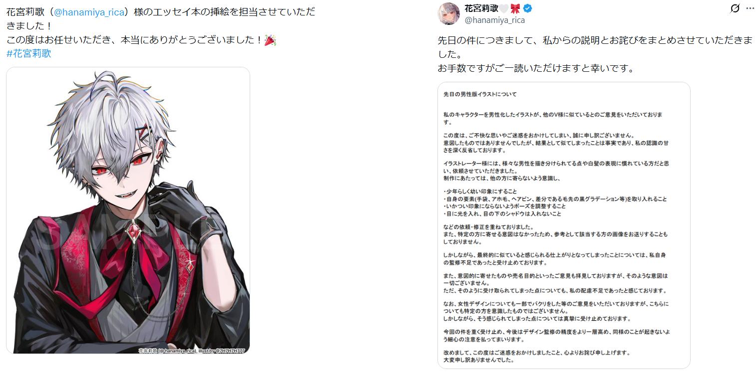 登録者67万人の女性VTuberが自身の「男性版」イラストを公開→葛葉に酷似しているとの指摘が続出し謝罪