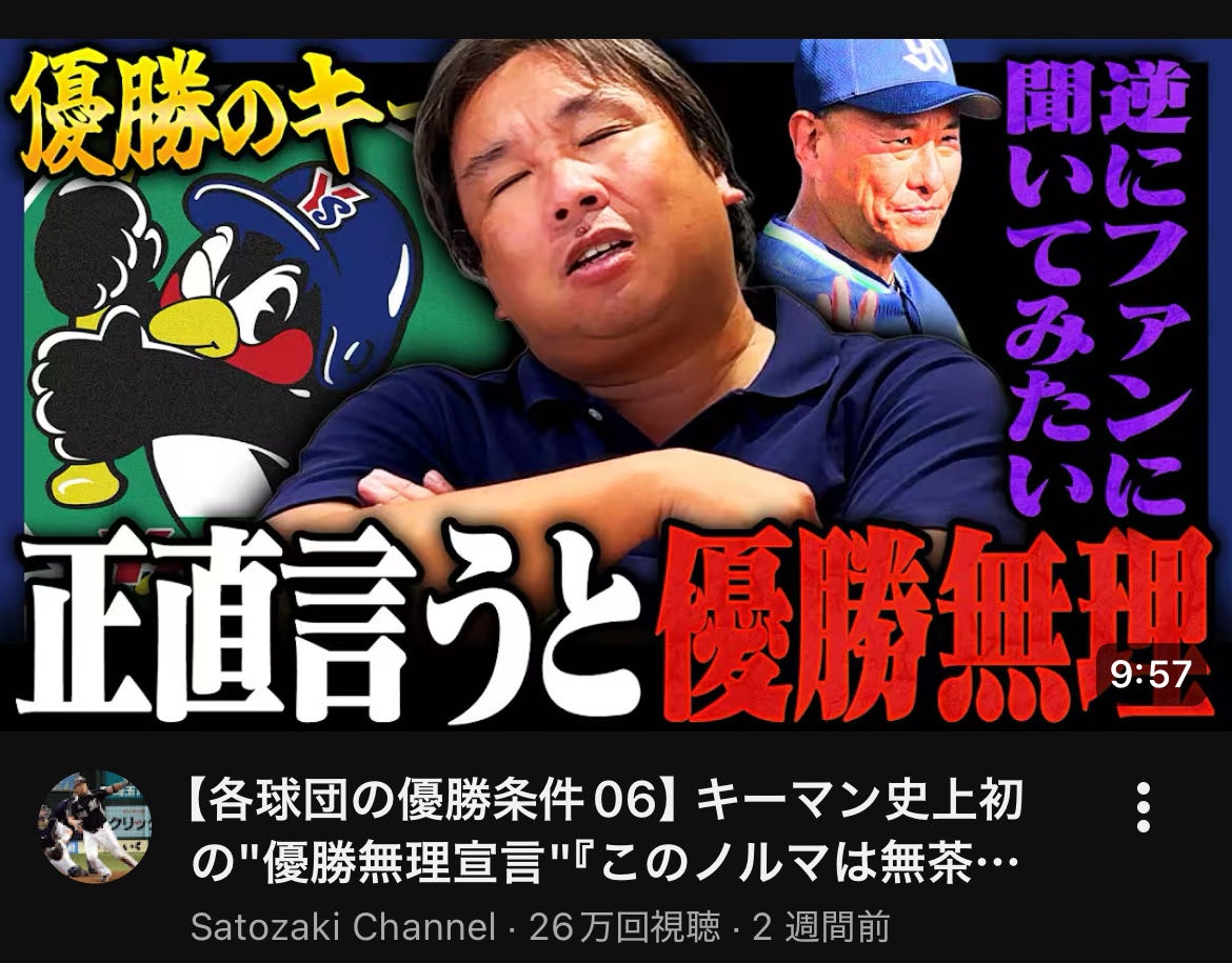 | … | 16726/03/25(水)21:49:52 ID:q5qkqmrANo.1414231677+🐧は地元が事実上存在しないチームだから忖度する必要がないってのも正直ありそうやねんな… |