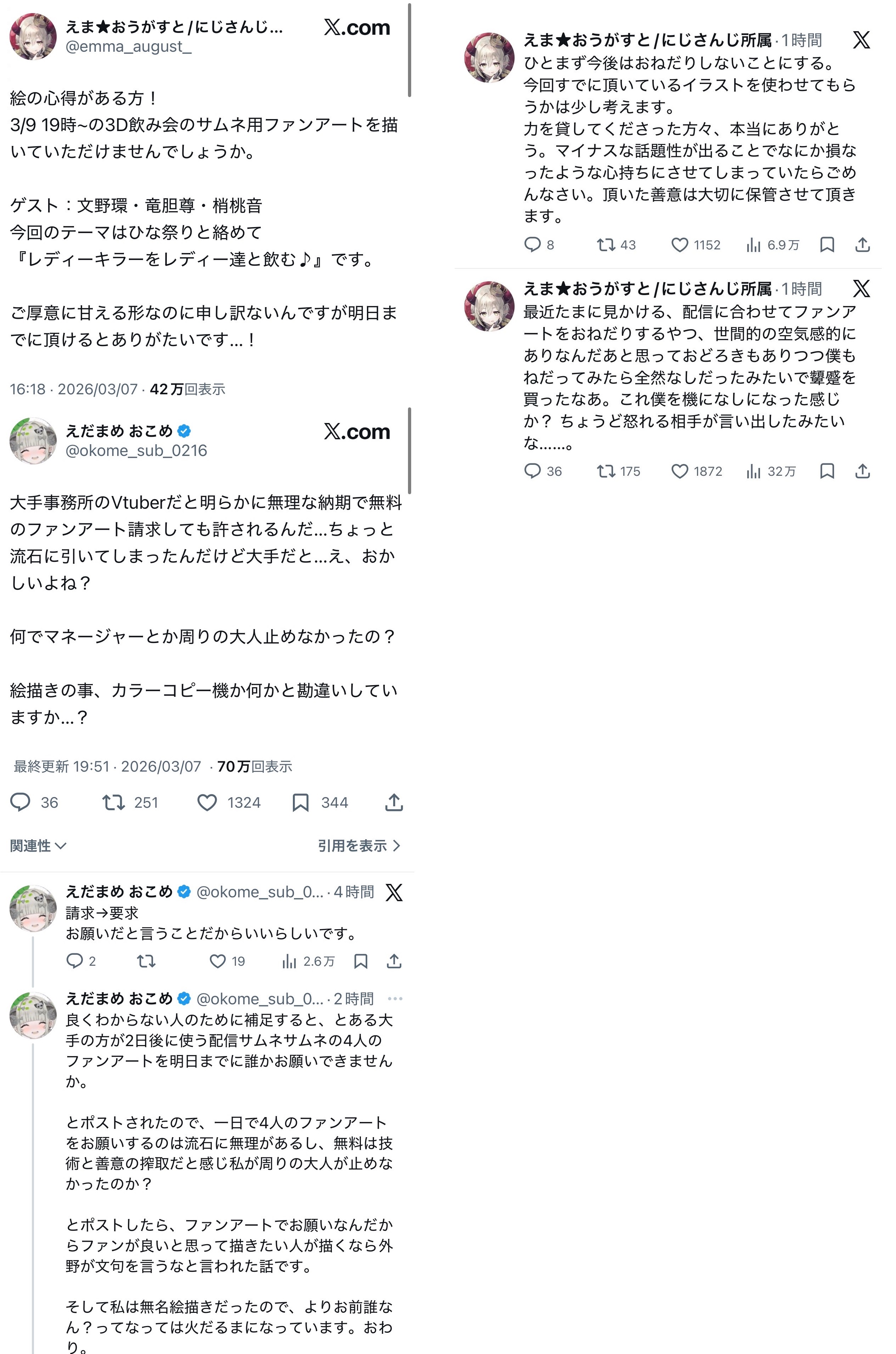 | … | 25526/03/25(水)22:19:17No.1414242759そうだねx3>こうやって依頼元の指示でちゃんと修正してるのに |