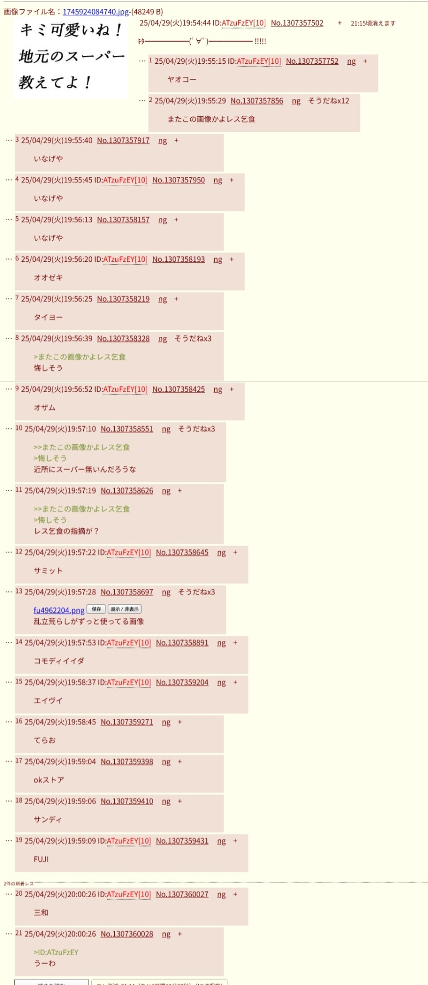 | … | 1126/03/26(木)03:29:49No.1414314348+荒らして遊ぼうぜ |