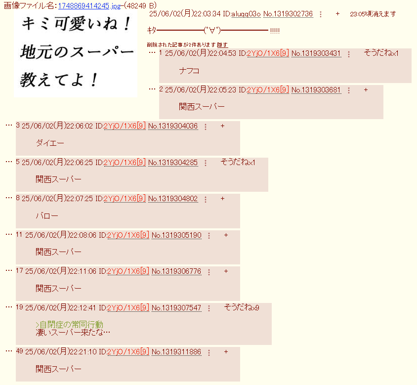 | … | 626/03/26(木)00:45:05No.1414291830そうだねx1スレッドを立てた人によって削除されました |