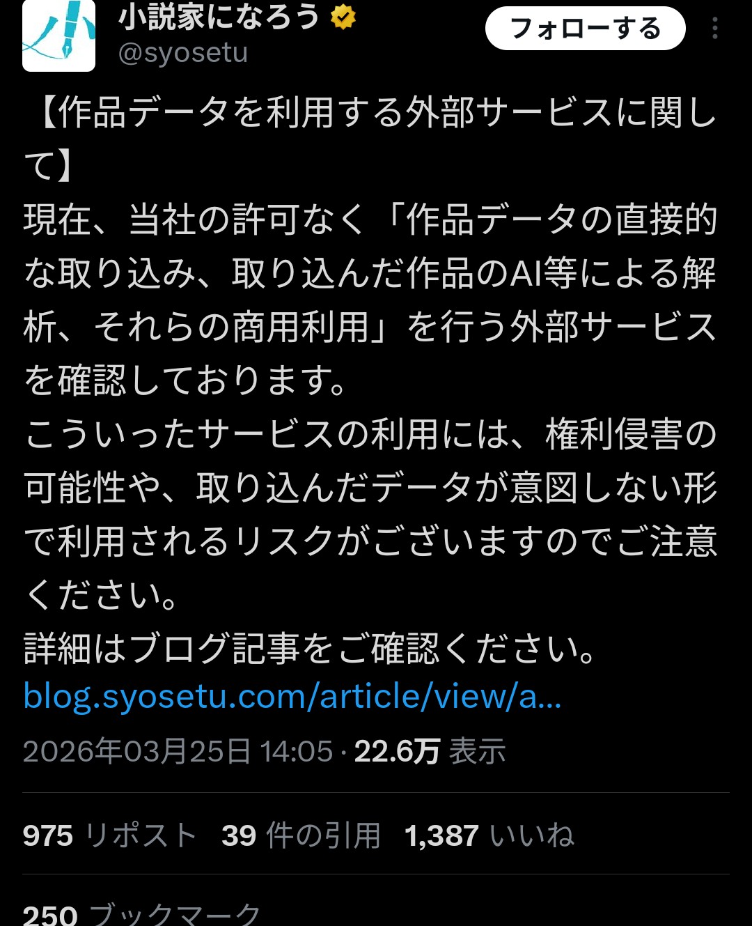 | … | 926/03/26(木)05:41:21No.1414317966+著作権の理念は「面白いことどんどんやれタダ乗りは許さん」であって先行者利益の死守ではない |
