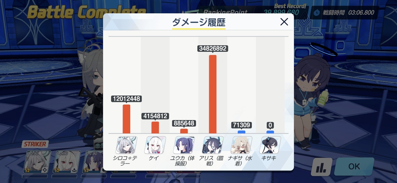 | … | 6726/03/26(木)06:48:06No.1414320312+🍅前半は正ムツキ・ツバキ・ミカ・ドアル・水シズコ・水シロコの編成ですごく安定する |