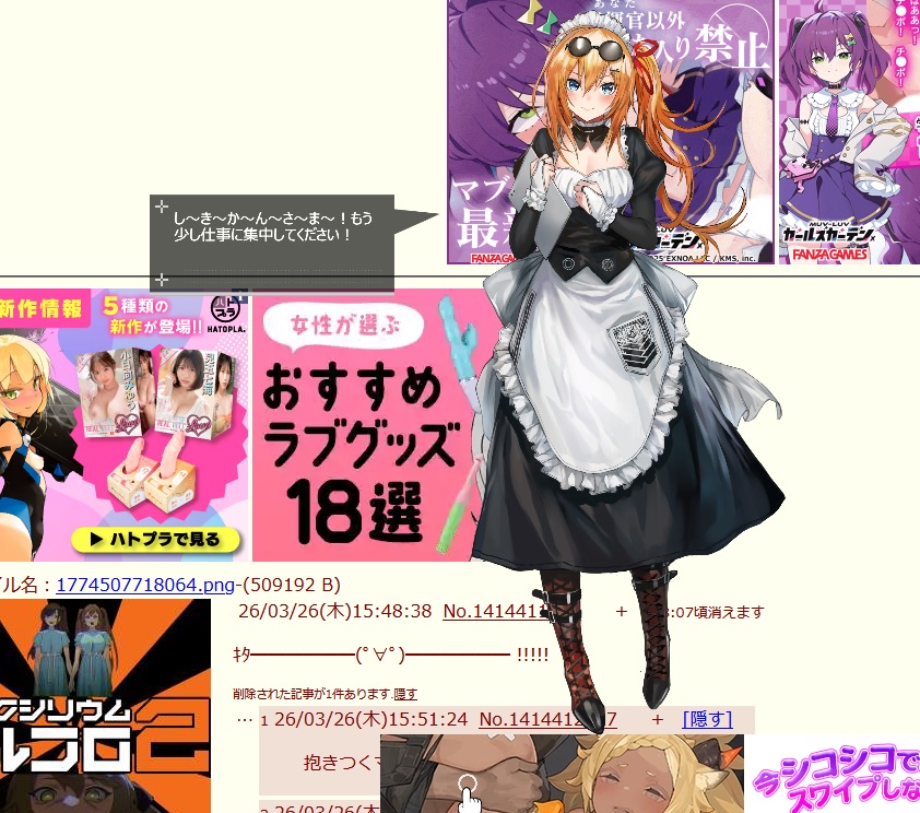 | … | 226/03/26(木)15:52:50No.1414412697+動画好評だったんだよぉ |