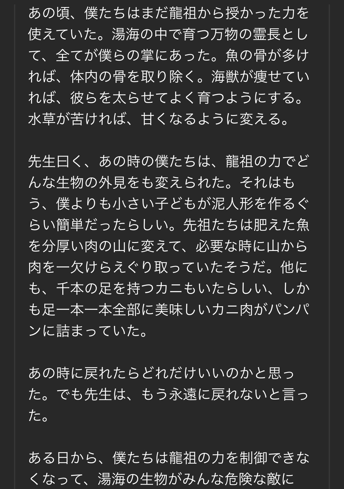 | … | 21126/03/26(木)22:15:27No.1414526656+もう忘れちゃったんだけどなんで急に鱗落ちてきたんだっけ? そこに言及は無かった? |