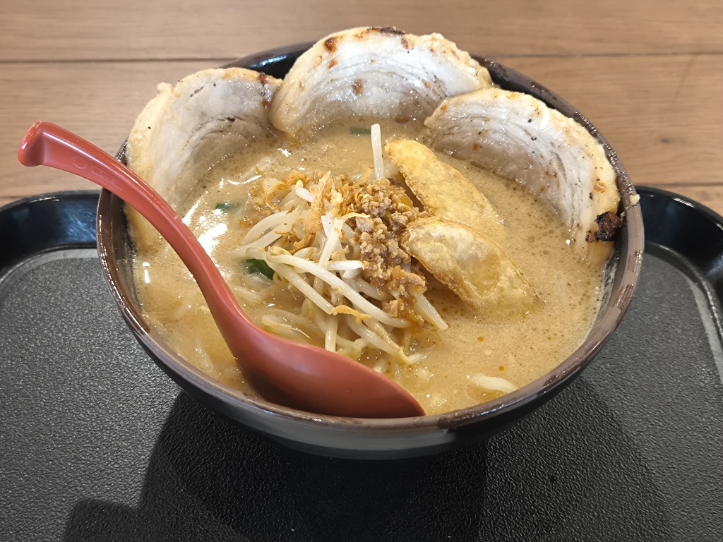| … | 2826/03/26(木)21:59:38No.1414520974そうだねx2>にへへ…「」ーちゃんもラーメン…ポテトみたいなのが乗ってて珍しい…チャーシューもジューシーで美味しそう… |