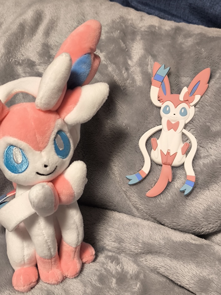 | … | 6126/03/26(木)22:29:15No.1414531306そうだねx2>最近ニンフィアが推しのポケモンになったから気になってポケセン行ってきたんだー☆ぬいぐるみと壁に貼り付けるフック買ってきたよ!しっぽの所が曲がるようになってるみたい☆ |
