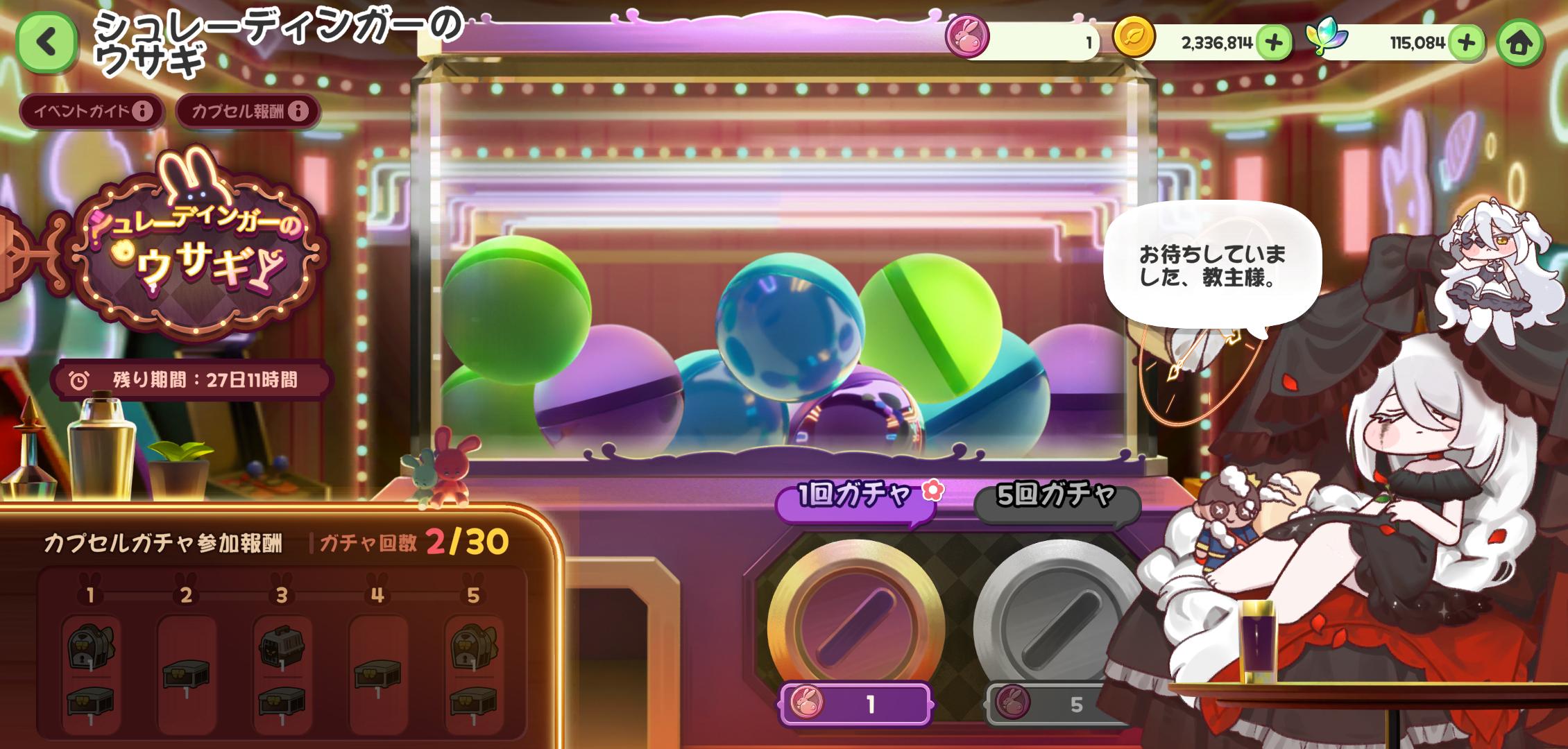 | … | 65526/03/26(木)23:10:02 ID:HPlyc4XYNo.1414545721+>fu6467309.jpg >ウサギガチャの参加報酬って30回回して報酬カウント1って事にゃん? サワヨ ウサギガチャ自体でも衣装とペット箱引ける可能性あるからそれ目当ての場合は早めに終わる可能性もあるにゃん |