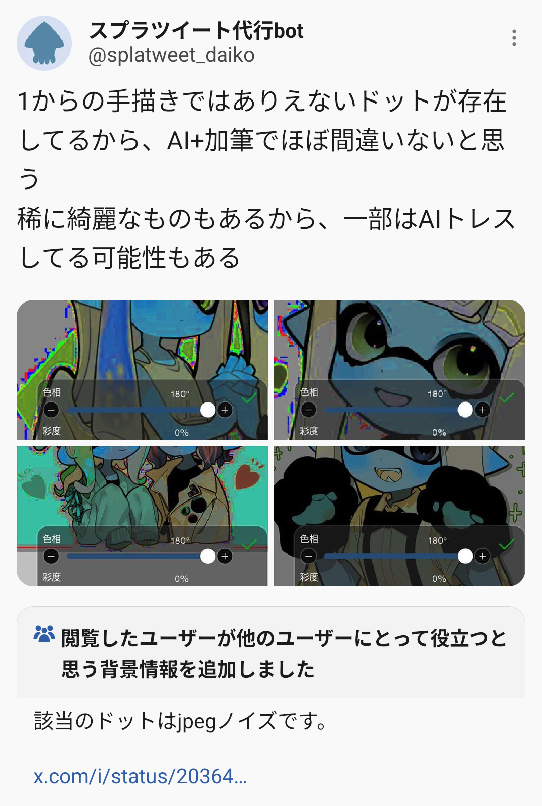 | … | 1026/03/26(木)21:55:11No.1414519347+絵を見たら機械的にとにかくAI認定という難癖をつける |