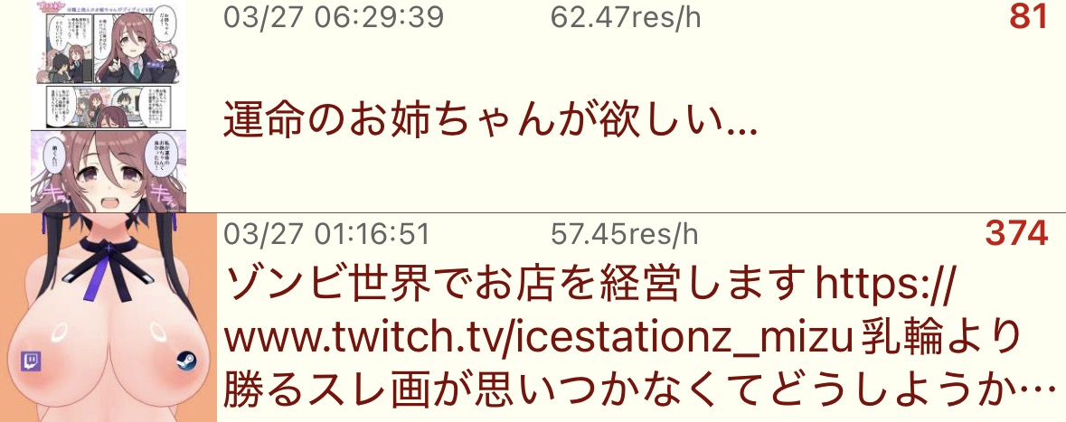 | … | 15826/03/27(金)08:49:20No.1414617742+オシリストかニューお姉ちゃんがいると俺はありがたい |