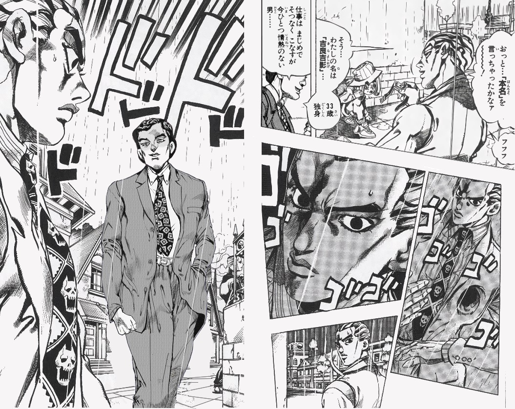| … | 1426/03/27(金)12:38:52No.1414662538+アニメだと「「吉良吉影」」みたいに重ねてた気がする |