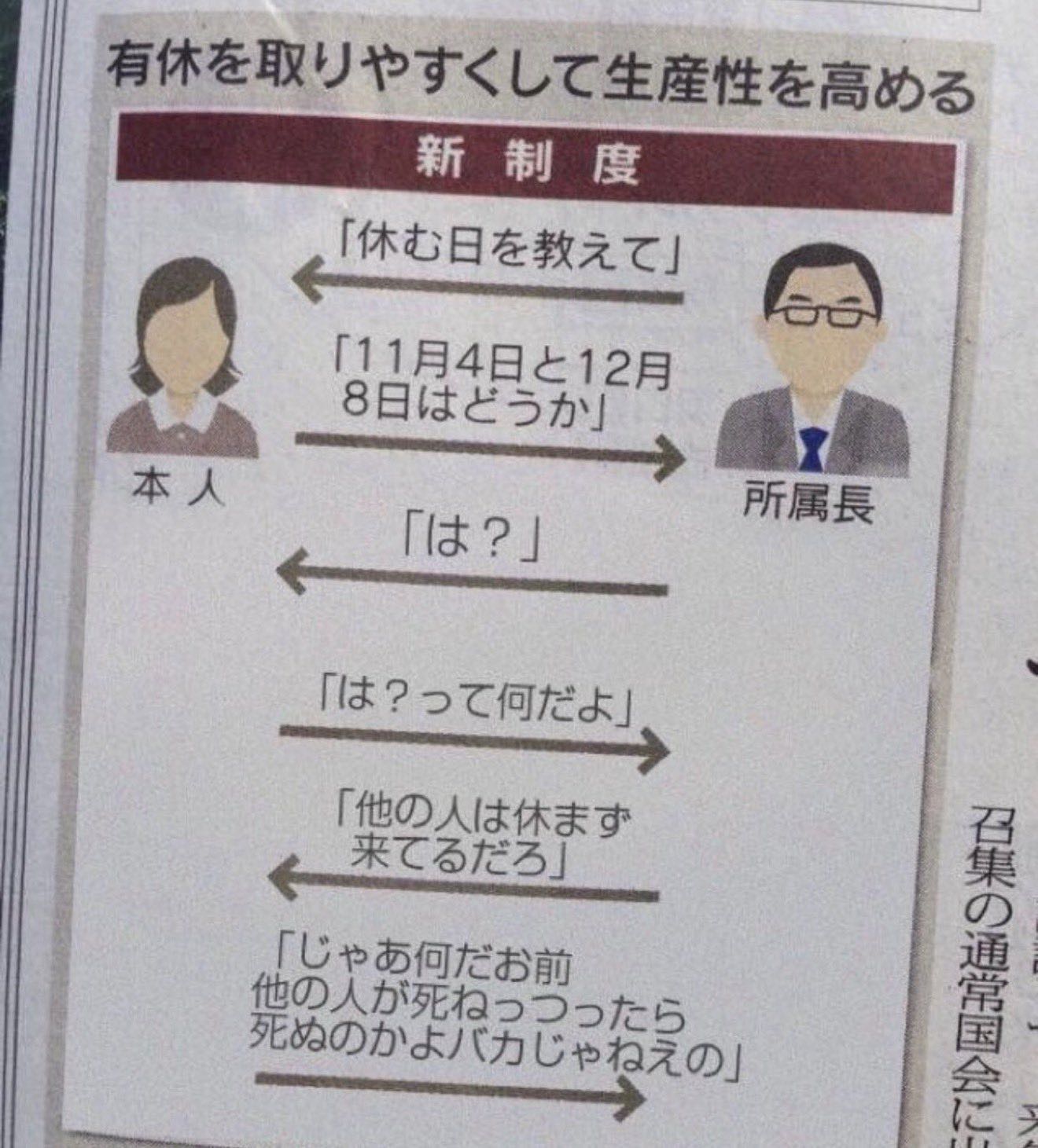 | … | 1526/03/27(金)12:44:12No.1414664163そうだねx3有給いらねえからその分賃金換算してくれ |