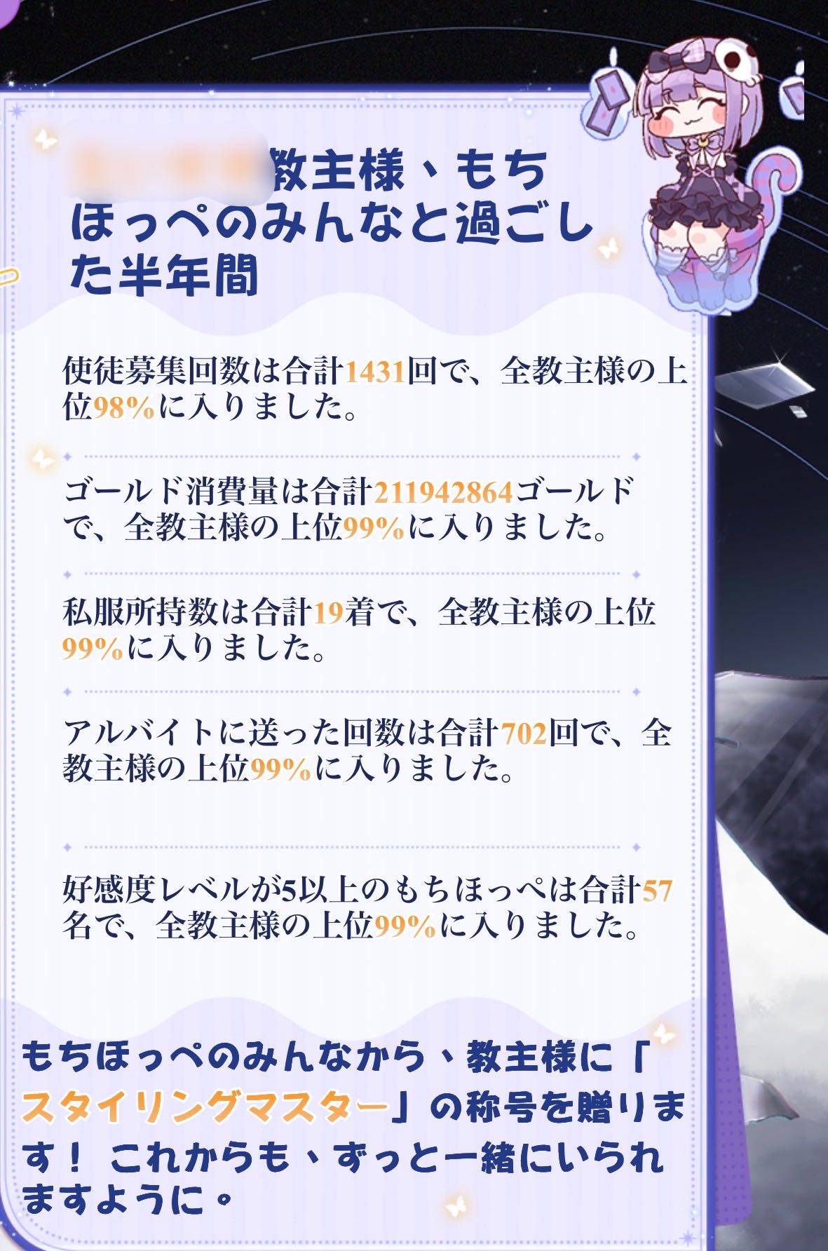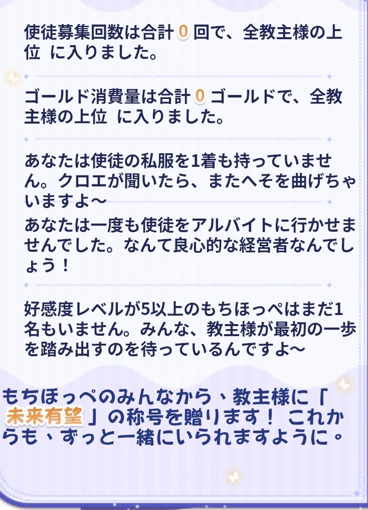 | … | 9726/03/27(金)14:05:23 ID:5/BUywOYNo.1414682782+ランキング実装でミニゲームで勝ちに行く教主も増えてきたにゃん |