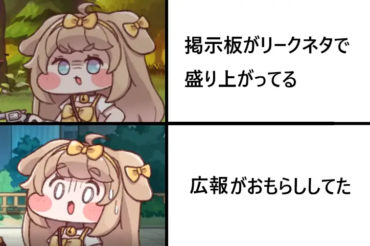 | … | 87026/03/27(金)16:16:56 ID:b81I0cWENo.1414706951+>>全部ガチャボタンくんこの状況で800要求してるのは強気すぎるにゃん… |