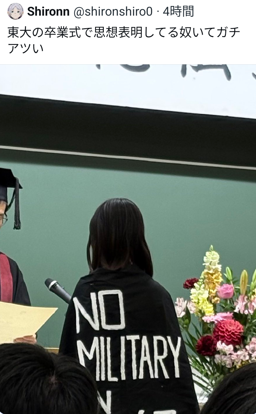 | … | 2626/03/27(金)14:08:49No.1414683444そうだねx11むしろ大学なんて思想ぶつけ合うところだろ |