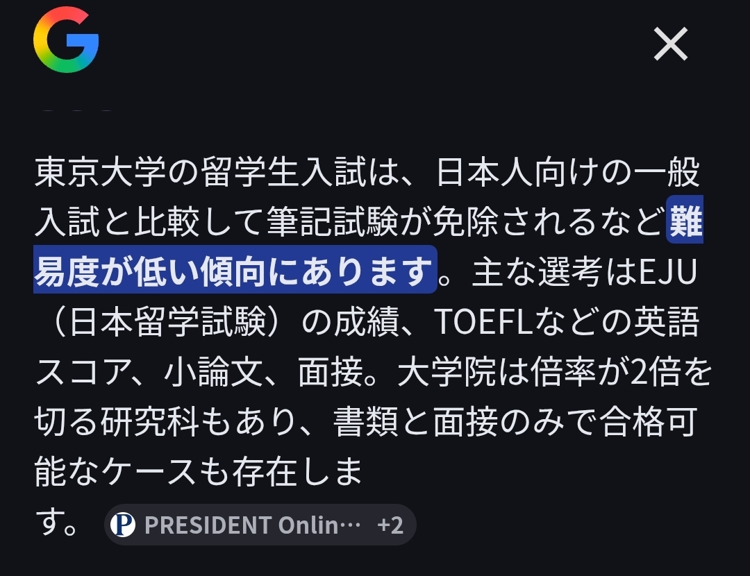 | … | 13226/03/27(金)15:07:19No.1414693434+東大ですら留学生には甘くて |