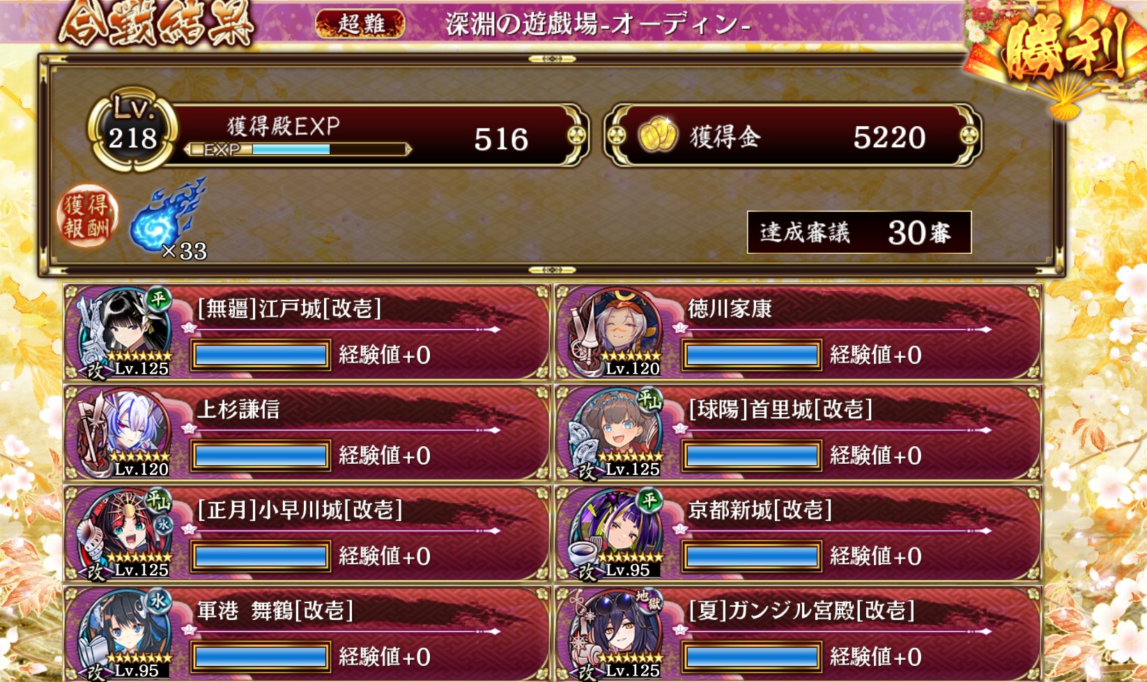 >御城の進捗具合はログイン勢と大して変わらんぐらいであんまりやってないけど