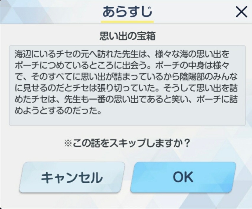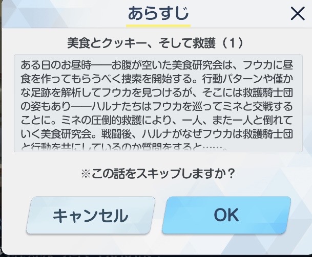 | … | 31426/03/27(金)17:38:10No.1414724630+あんまスマホゲームやってないけどスキップのあらすじ用意してあるの珍しいよね |