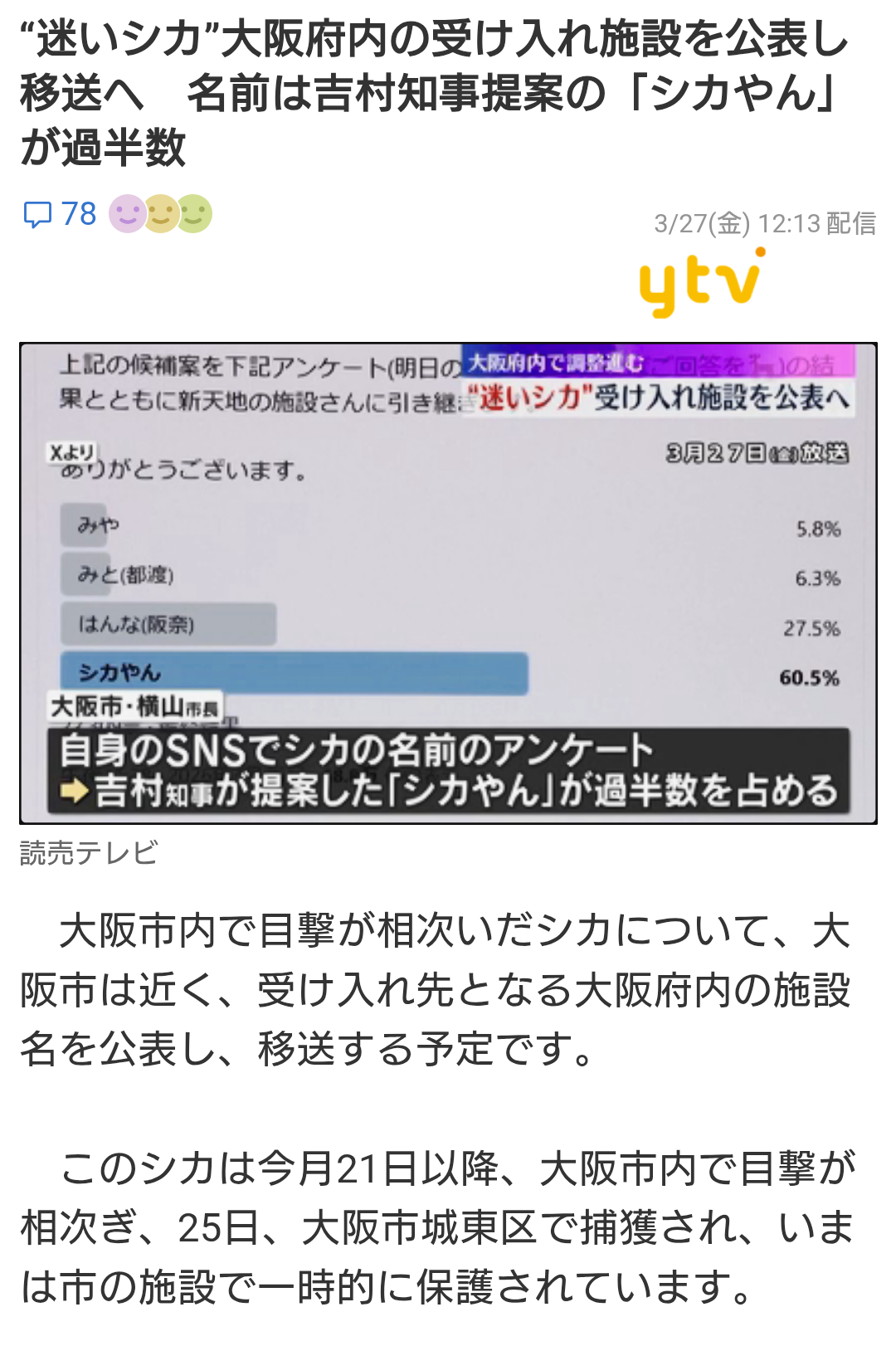 奈良県民がシカやんって名前になるらしいけどただのシカやん