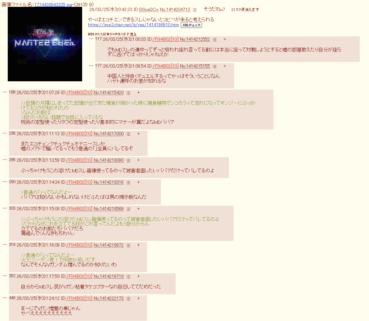 | … | 25626/03/27(金)20:40:30No.1414795794+>隔離スレでエコチェンするの好きだね |