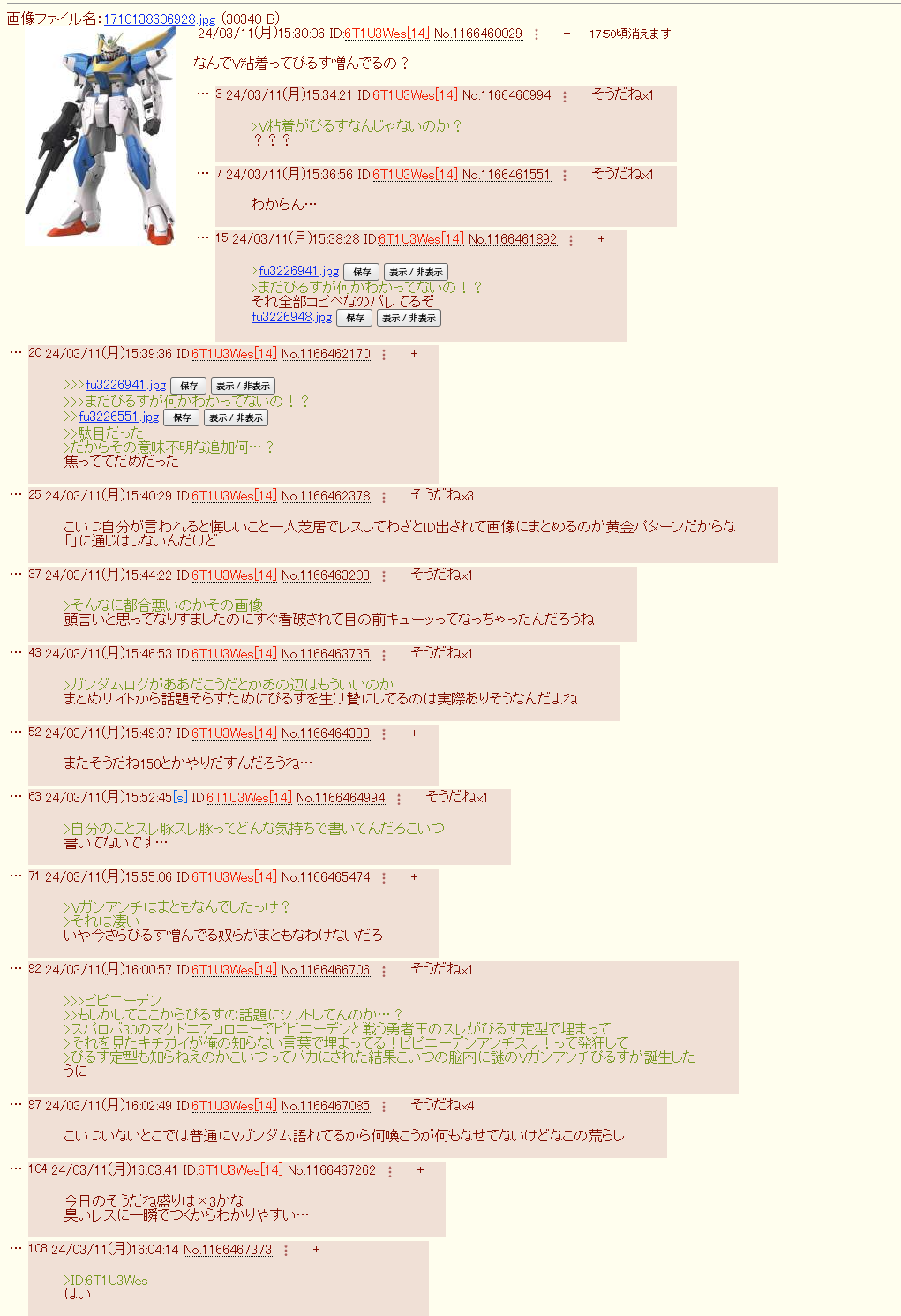 | … | 23626/03/27(金)20:36:33No.1414793747そうだねx1>ぴるすも知らなくてVガンダムスレ立ててるのは全部ぴるすだから潰してくれとか言ってなかった? |