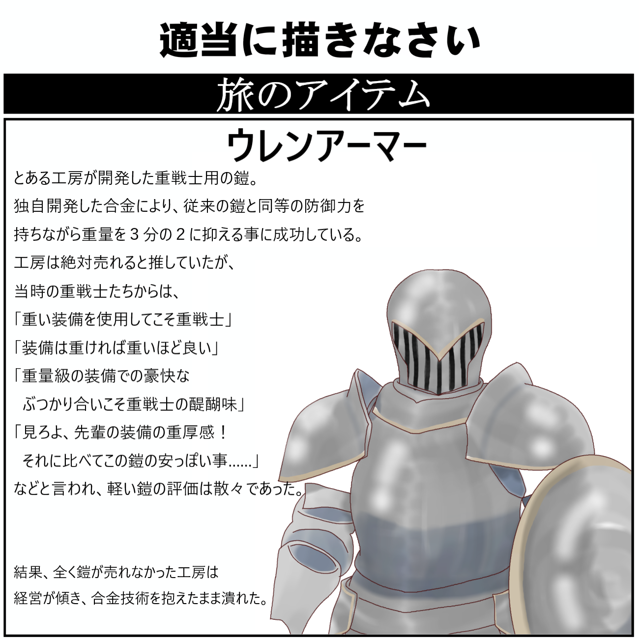 | … | 2226/03/27(金)21:47:32No.1414832002+重さそのままで防御力を盛る方向に行っておけば… |