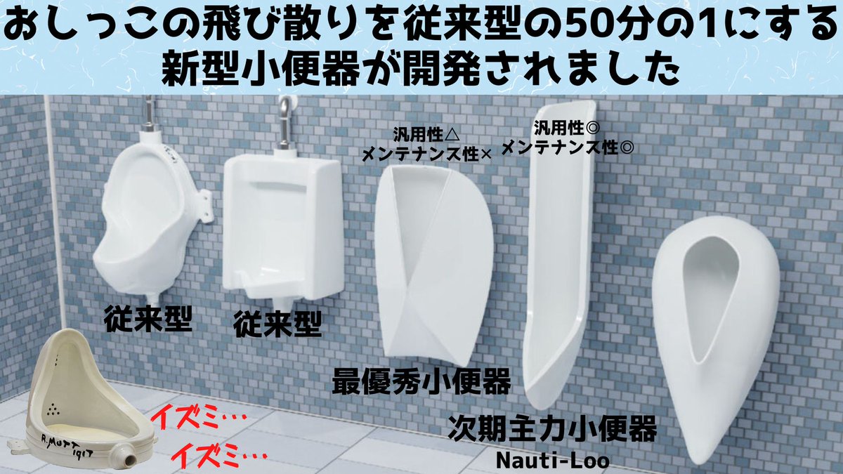 | … | 326/03/27(金)23:11:12No.1414867983+小はまだしも大の方はもっとこう今の人間工学や流体力学とかでもっと汚れず快適な形状にならないものかと思う |