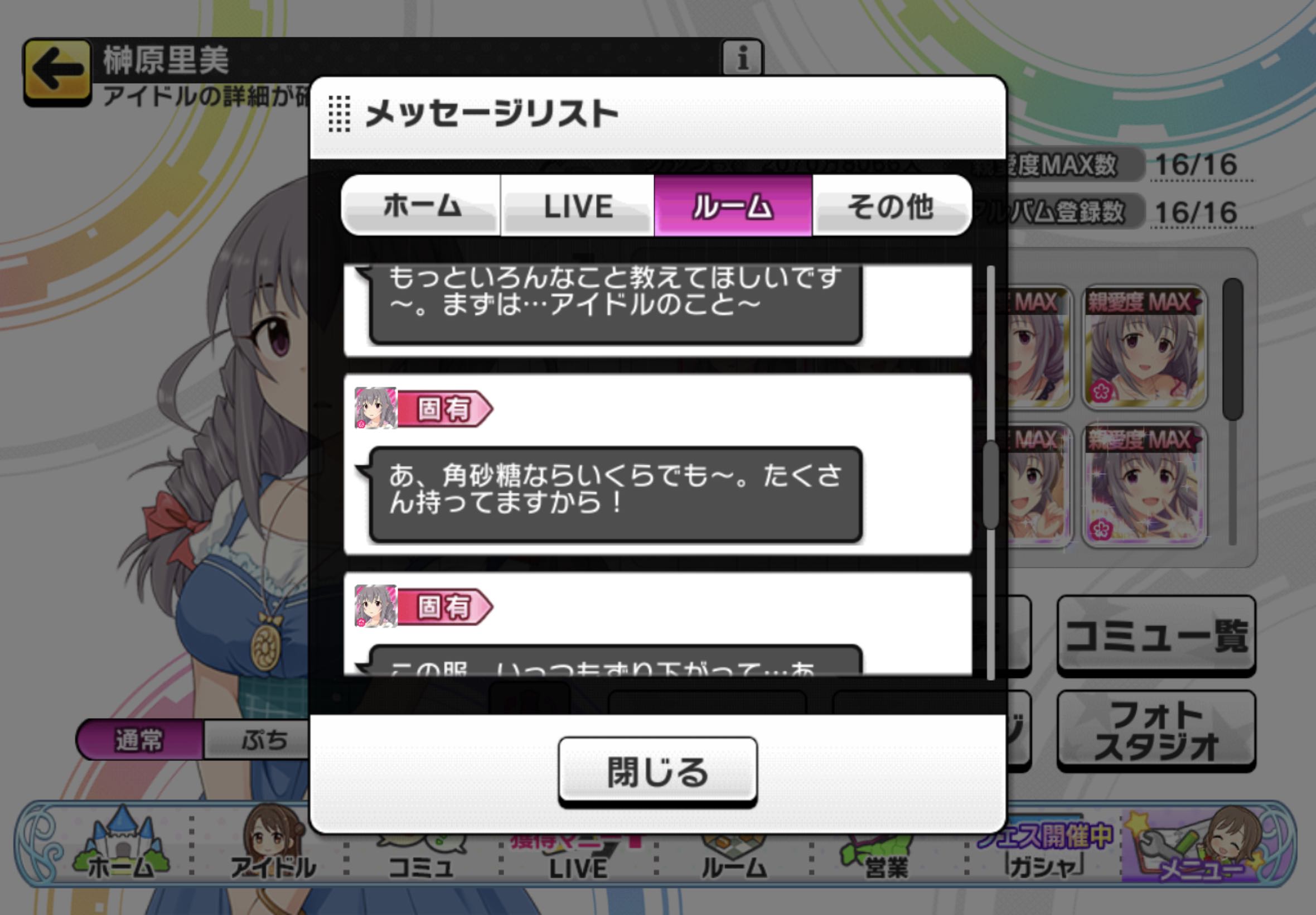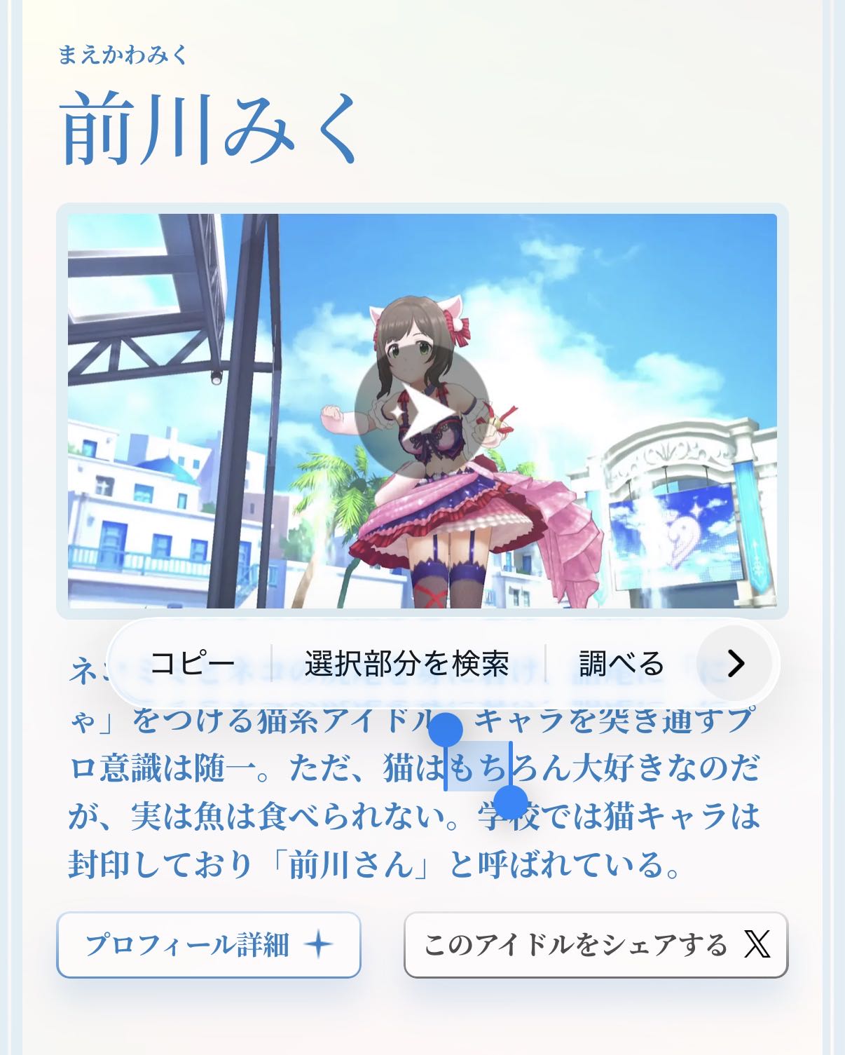 アイドル個別画面には新規の紹介文とかGJGの固有モーション動画があって歌唱曲収録CDへのリンクもある