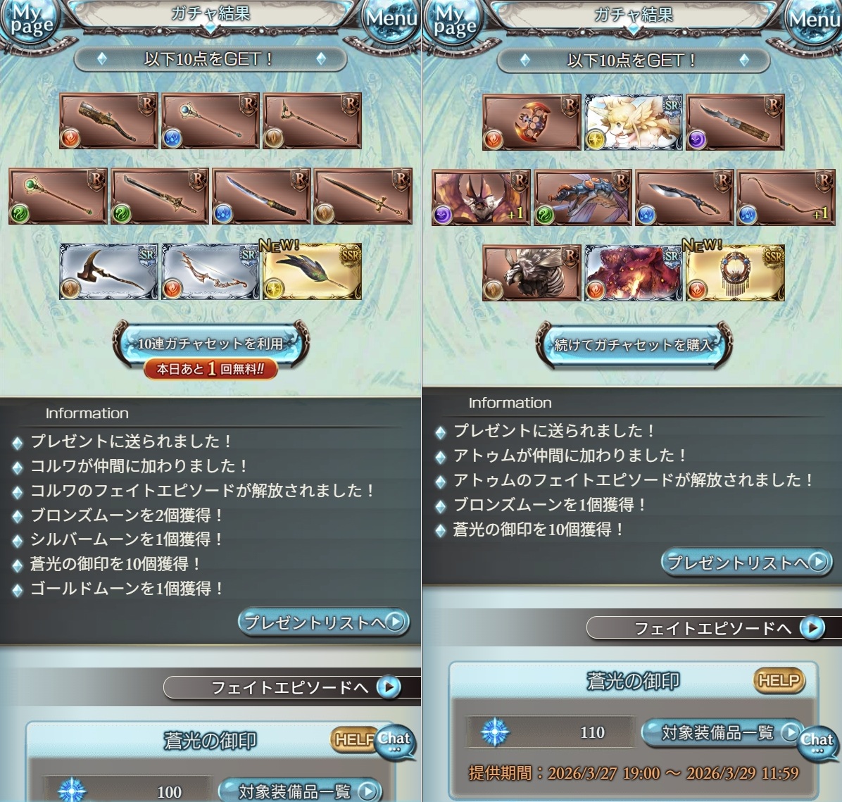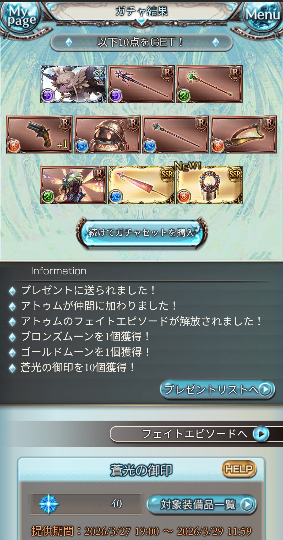 | … | 9726/03/28(土)05:20:12No.1414927372+>アトゥムチャンスはもう明日で終わり? |