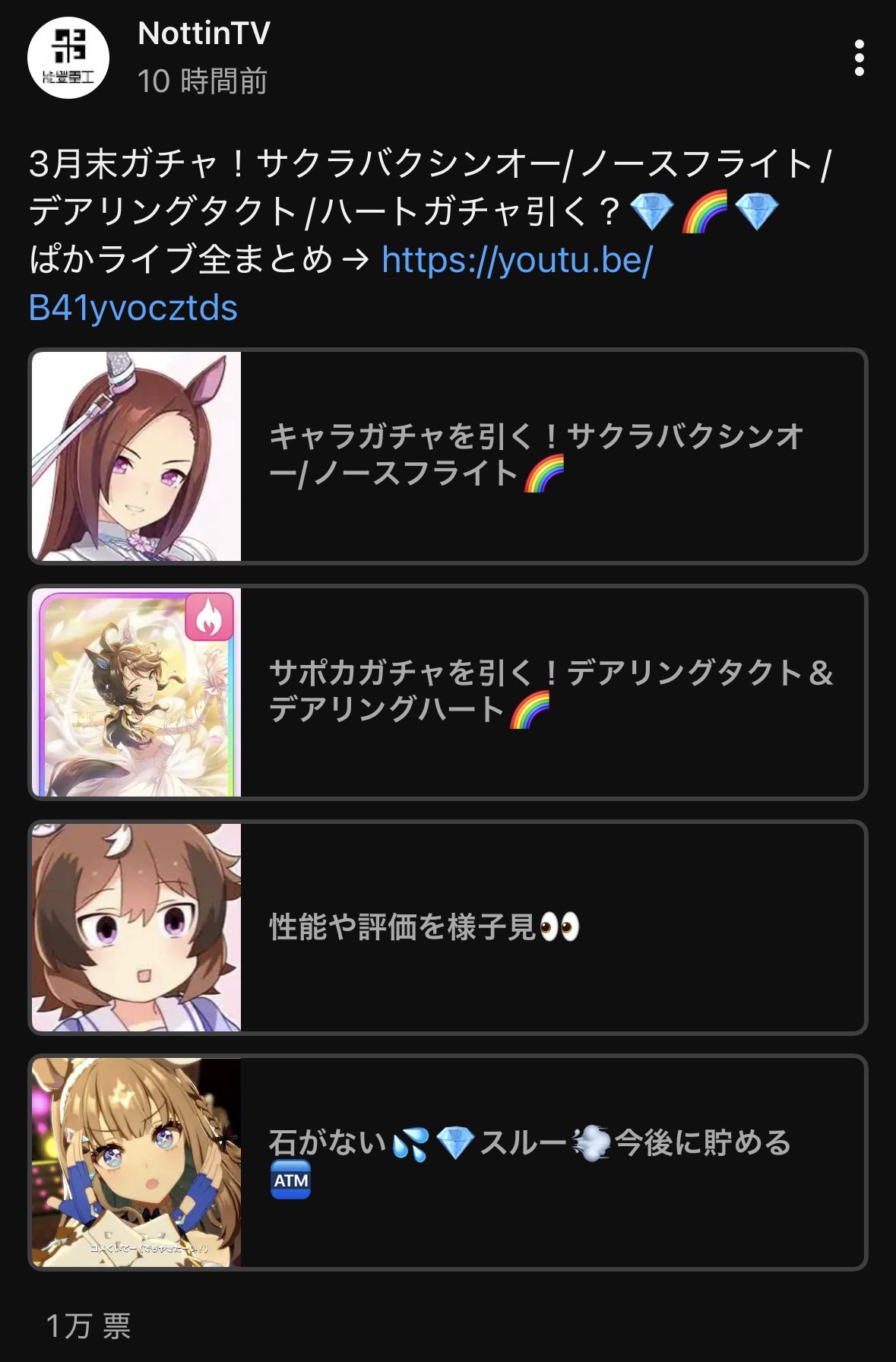 | … | 126/03/28(土)09:01:19No.1414947108+因子周回したいのに阿吽サポカが明後日だから暇なのだ |