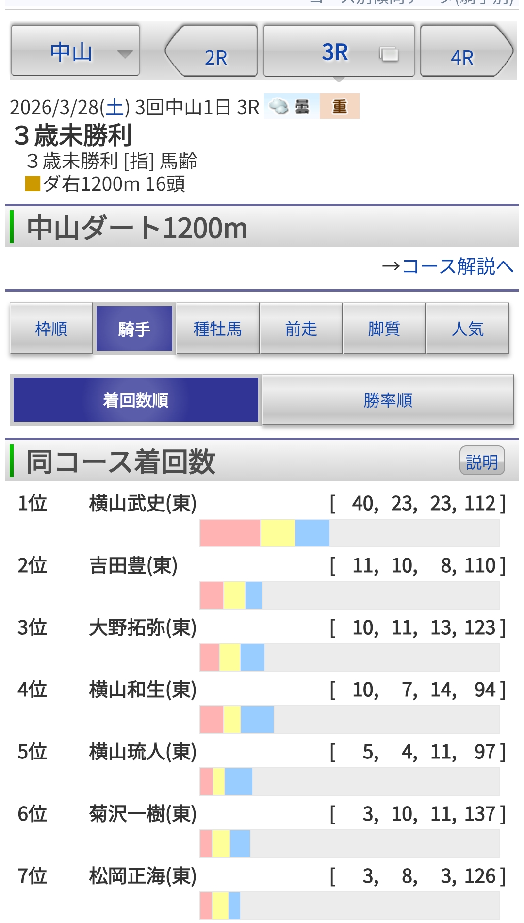 | … | 24026/03/28(土)12:39:25 ID:/TS1UrmcNo.1414995714+他の既勝馬はだいたい重賞行くからしょうがないとはいえ中山の一勝クラスはこれほんとに一勝クラスといえますか? |