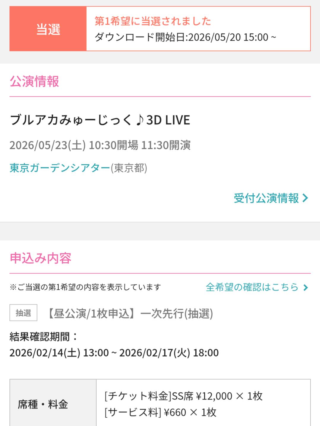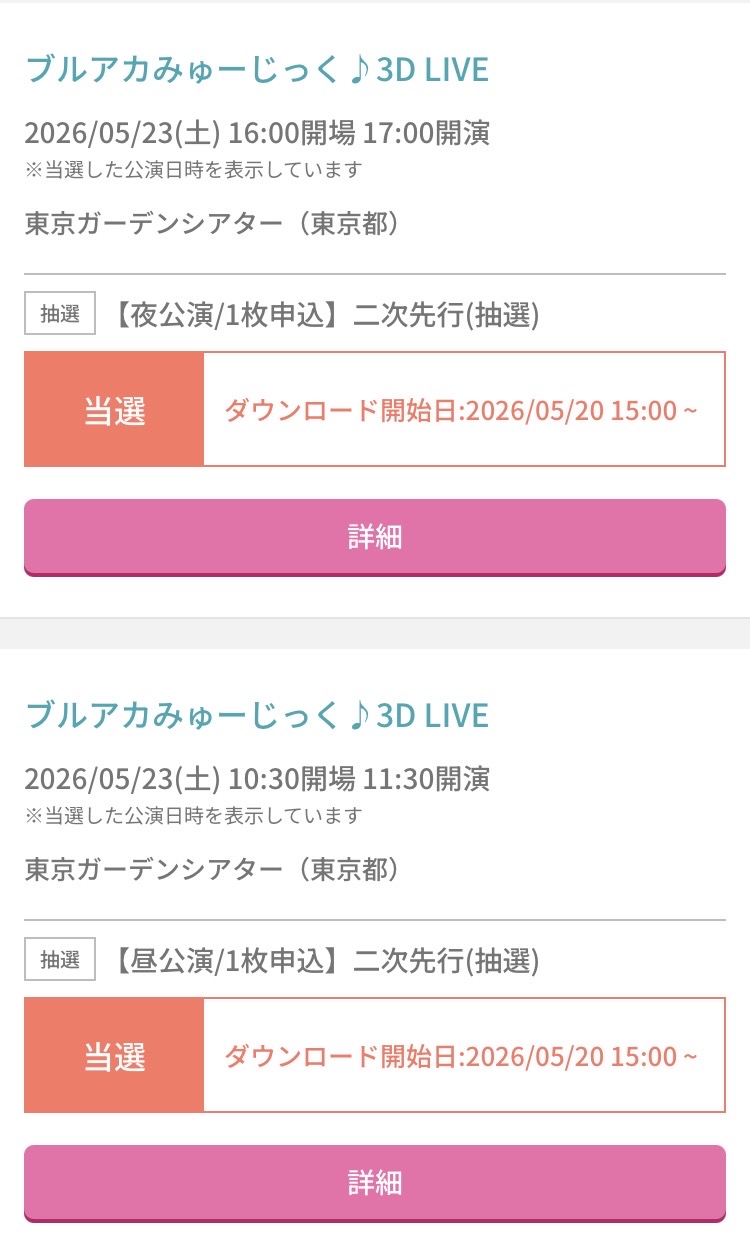 | … | 6026/03/28(土)12:42:13No.1414996478+あっせん今日は確か3Dライブの当落発表だにょ |