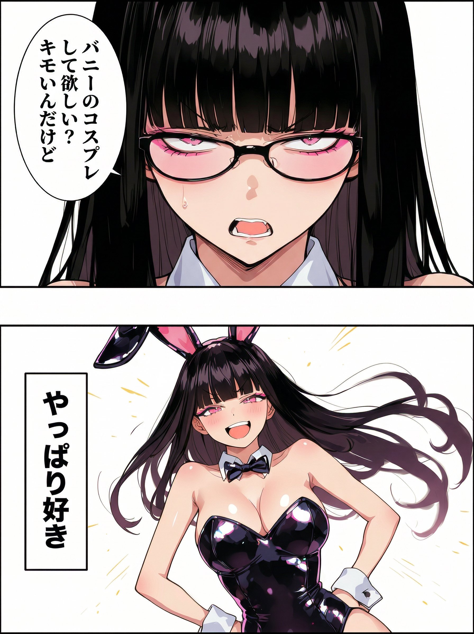 | … | 4226/03/28(土)13:45:12No.1415014387そうだねx3一コマ目ですでにバニーの姿でいるというのがAIなりのオチなのか |