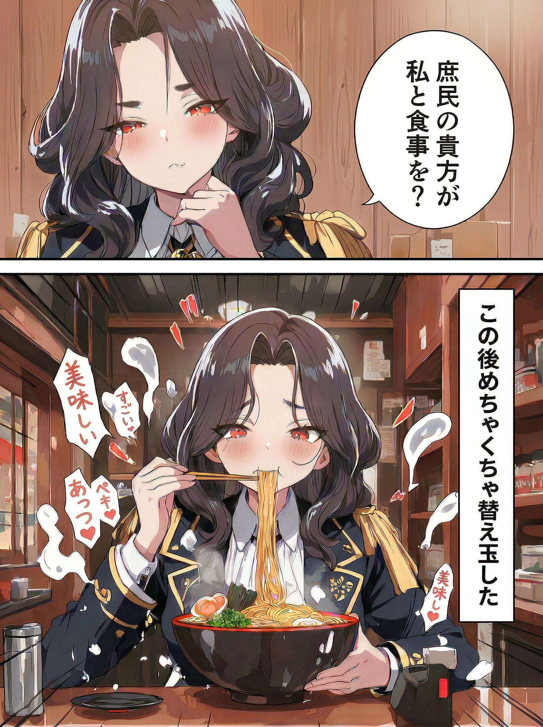 | … | 926/03/28(土)13:32:59No.1415010891そうだねx6>いやあえてプロンプトを駆使して一枚におさめてもらうのが面白いんだ |