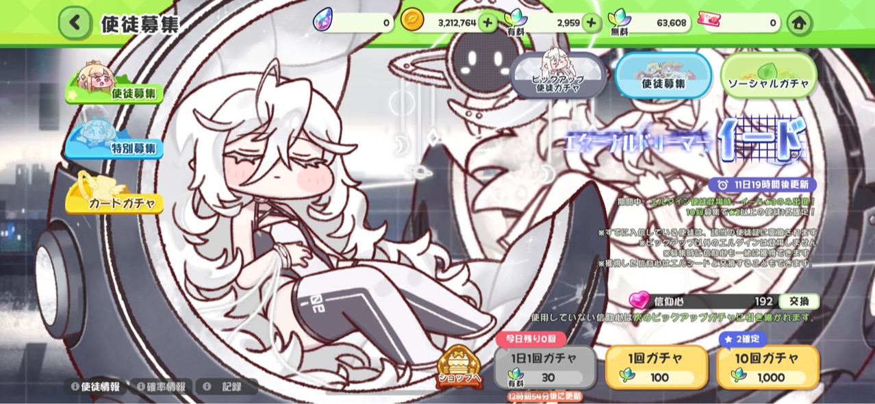 | … | 5526/03/28(土)14:19:03 ID:sRoXEeo6No.1415024345+イードを天井ポイントでお迎えしたけど何となく20連したら星3が2人出てきてどちらも関係ないキャラでしたにゃん |