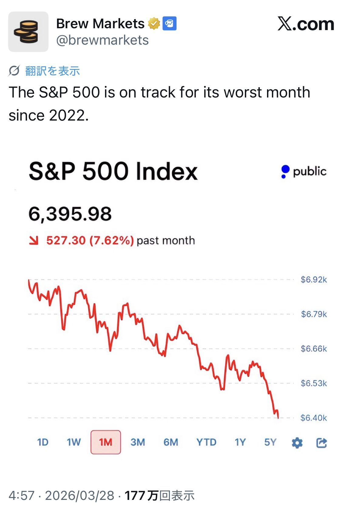 | … | 39026/03/28(土)16:25:19No.1415054753+去年も下がってたってそれは時期のせいじゃなくて去年は関税で今年は戦争だからじゃないの |