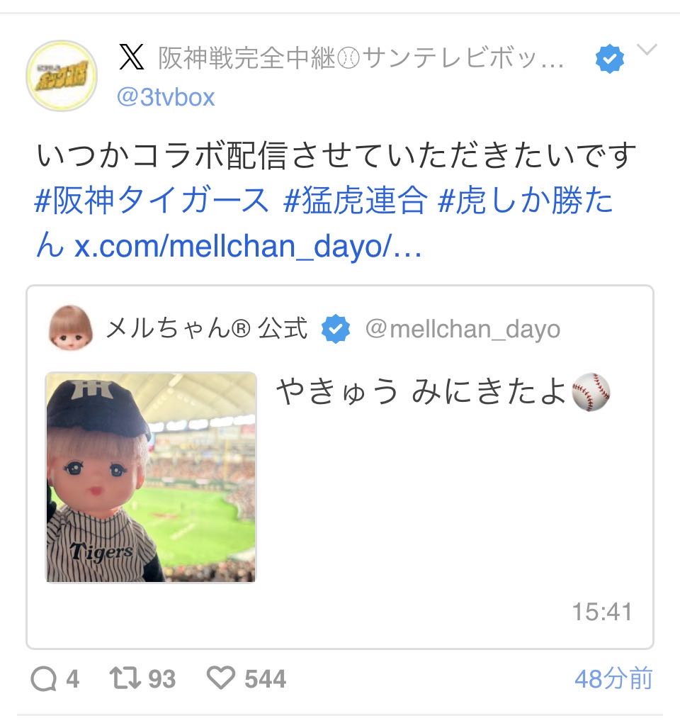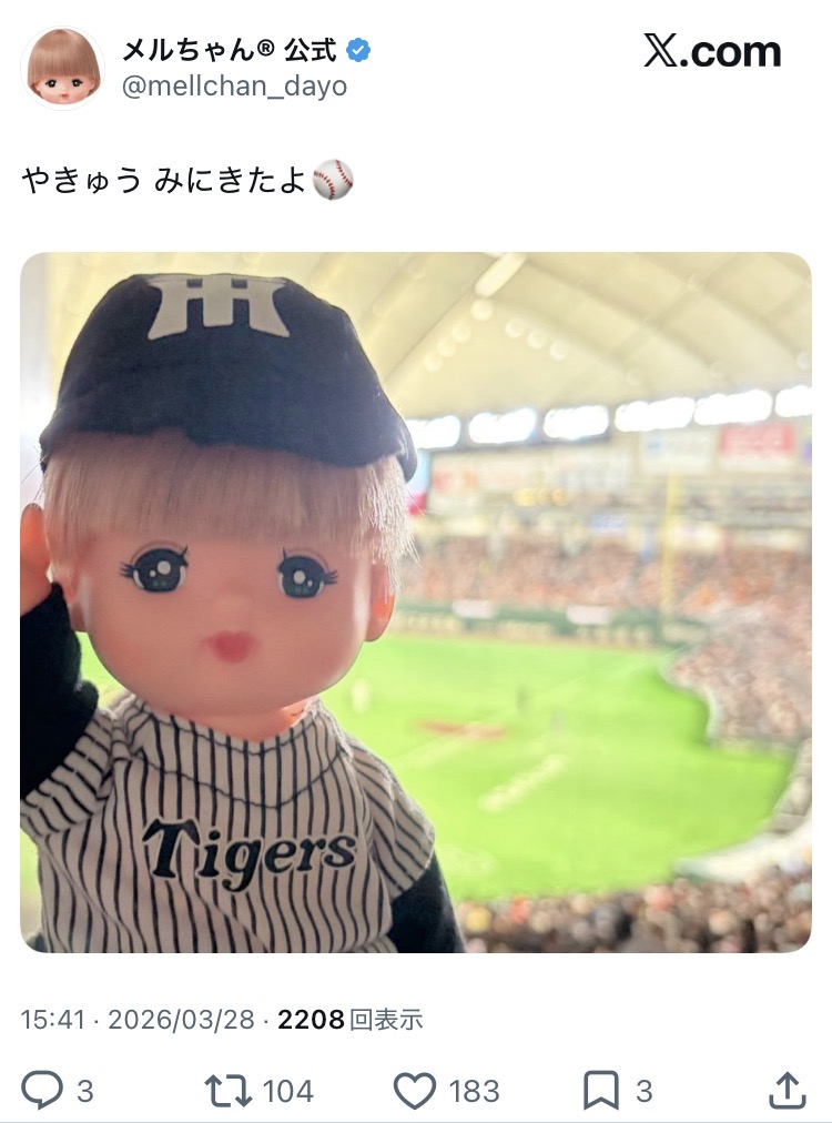 | … | 3426/03/28(土)17:27:09No.1415070158+中間管理職トネガワみたいな人がメルちゃんもって野球観戦してる事実 |