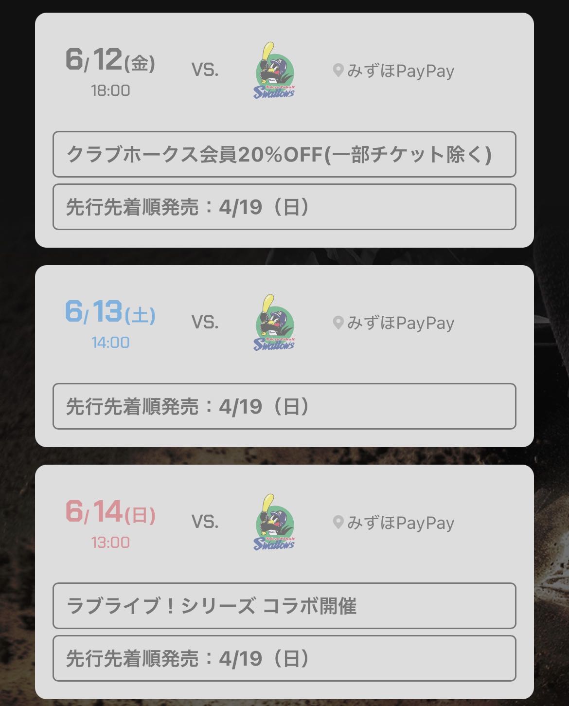 | … | 28726/03/28(土)18:22:58 ID:h7ZY0zzwNo.1415085190+>明日は買えなかったってどういうこと?どうして開幕カードのチケットが買えなくなるの? |