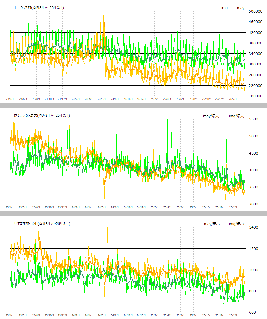 | … | 9826/03/28(土)21:10:06No.1415146969+>1000連発のmayの実態がこれ=全体下がってんだから一部スレだけ盛り上がってるように見えてるって事だよね? |