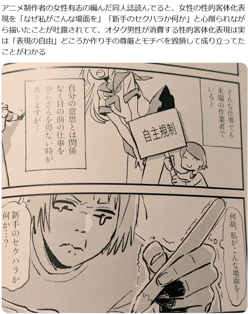 | … | 1226/03/29(日)03:55:43No.1415264245そうだねx87男のアニメーターだってBLシーンやら男の裸やら描かされてたりもするけどいちいち漫画にしてセクハラされてるなんて被害者面せんよ |