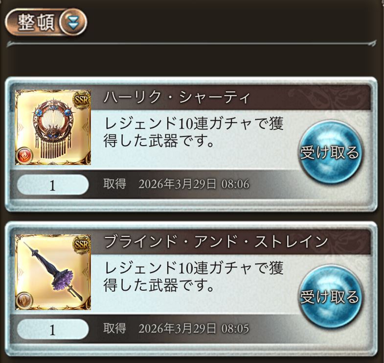| … | 2526/03/29(日)06:23:01No.1415271206+>今月末から中身が変わるってんで今年分の金綬開けたけど石チケ0で悲しいんだよ… |