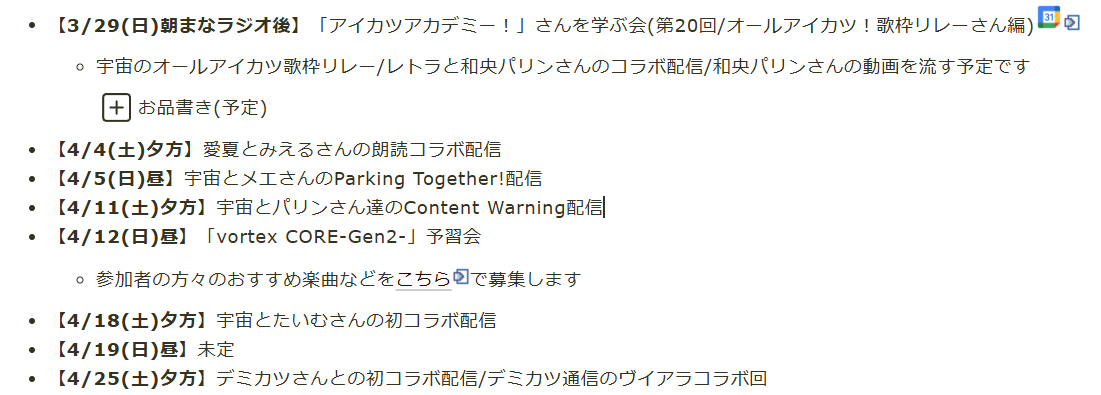 4月の予定スケジュールは以下の通りです