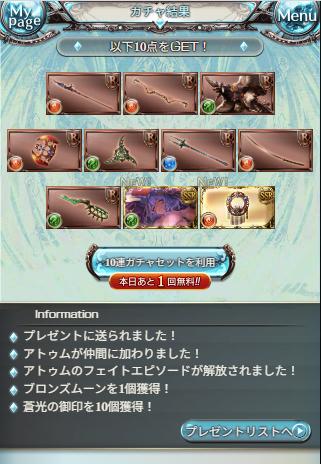 | … | 1726/03/29(日)10:41:32No.1415316782+アトゥム様は出ませんでしたが冷静に考えればりっちょ様とバステト様がいらっしゃったので無料としては大変よろしい結果な気がしてきましたわ |