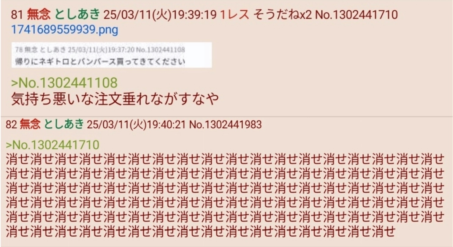 | … | 426/03/29(日)15:13:52No.1415393910そうだねx27架空の荒らしってしたいの1人だけだよ |