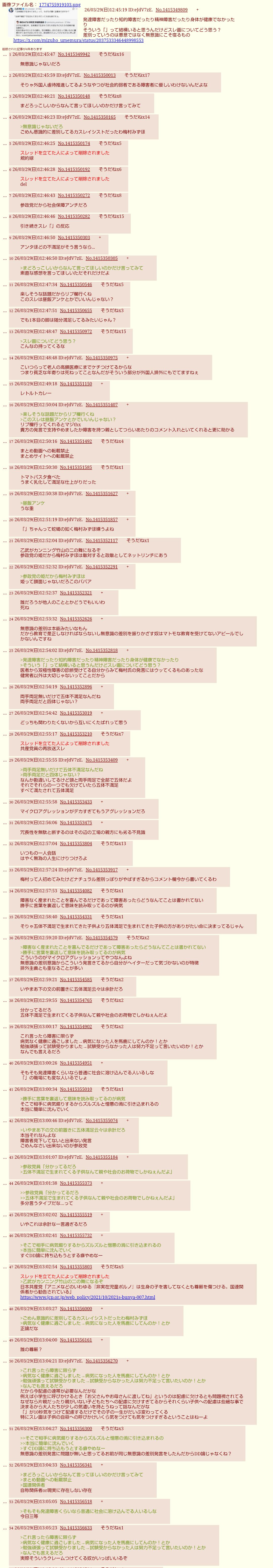 | … | 3926/03/29(日)16:14:28No.1415412451そうだねx6>>ツイッターをプリントスクリーンしないでください |