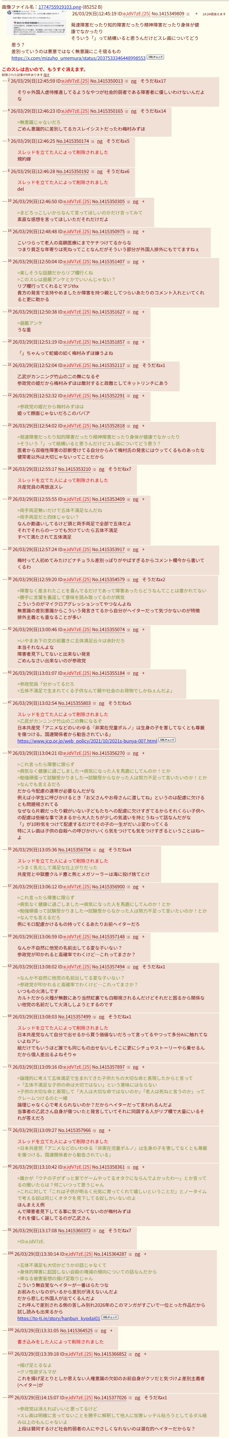 | … | 126/03/29(日)15:58:12 ID:U3AX7xaENo.1415408005+職場に片腕ない人がいるから身近 |