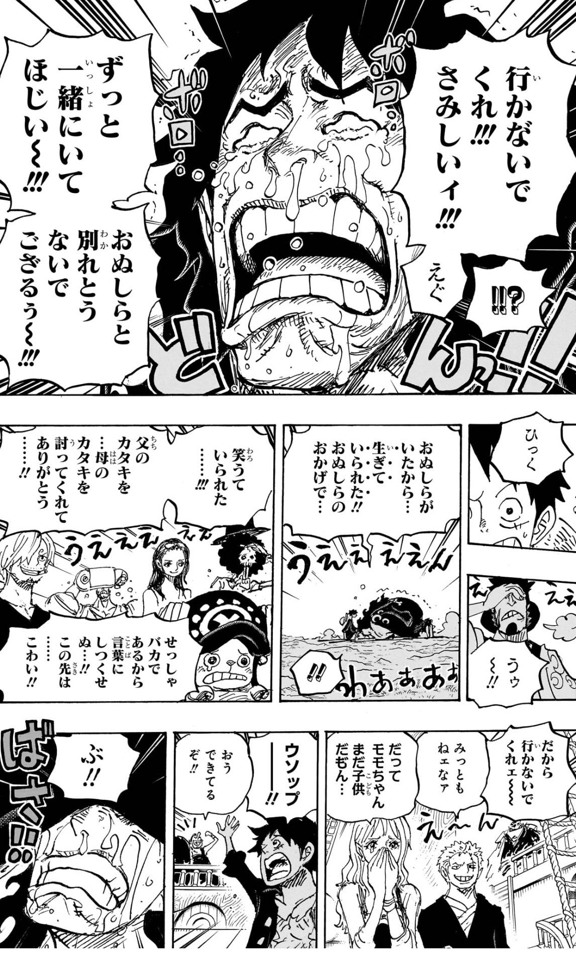 | … | 4426/03/29(日)17:43:54No.1415440373+パンクハザードの時からルフィはモモを対等に見てる(ので子供扱いしないし妥当にボロクソに言う)ってのが繰り返されてきてのこれがいいんすよ… |