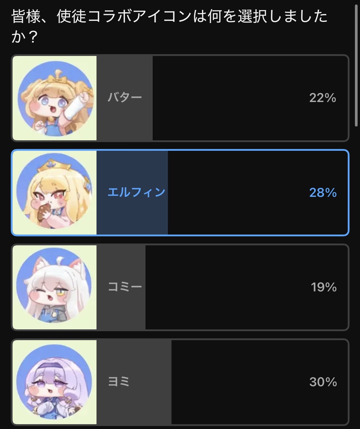 | … | 6226/03/29(日)19:52:03 ID:InIBndYsNo.1415490212+>たまに選択画面開いてコラボアイコン4つ並びを眺めるにゃん |
