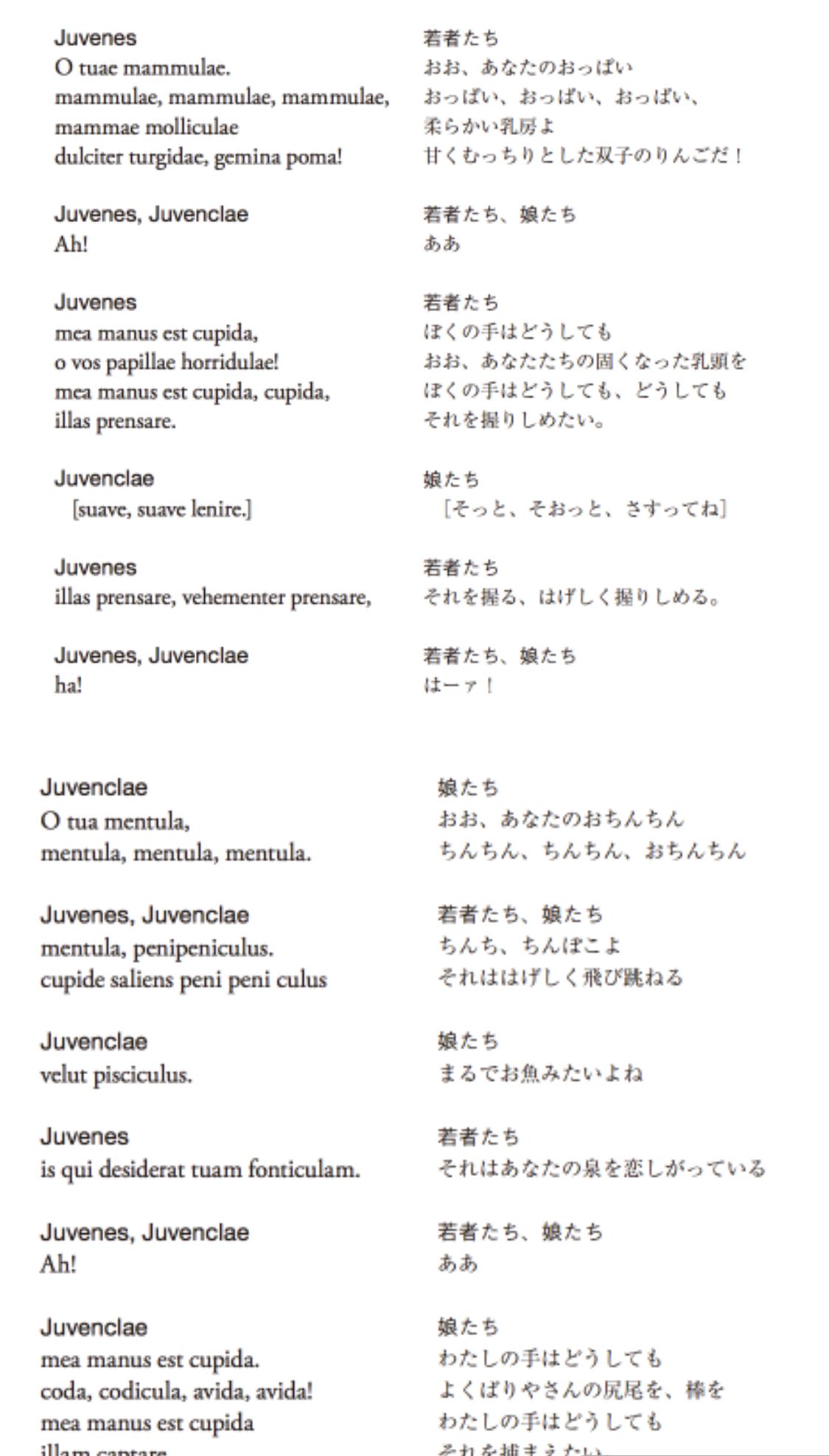 20世紀を代表するクラシック作品「カルミナ・ブラーナ」の続編「カトゥーリ・カルミナ」の歌詞の和訳このスレは古いので、もうすぐ消えます。